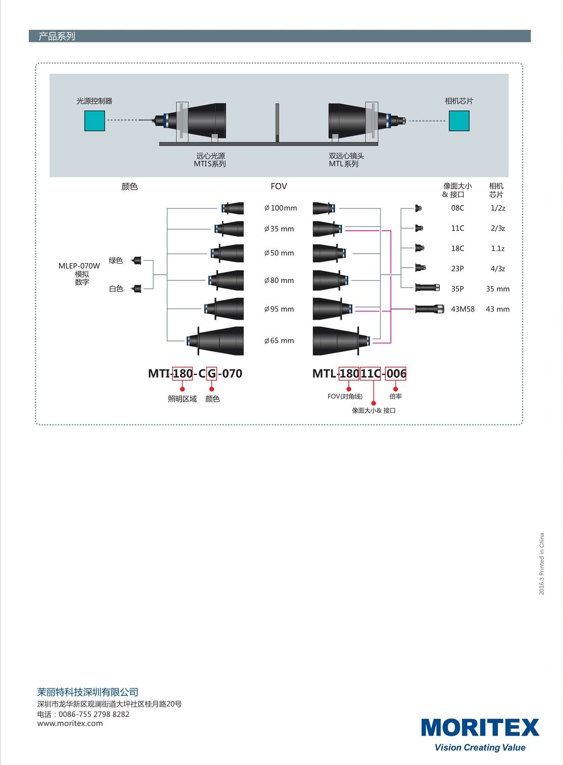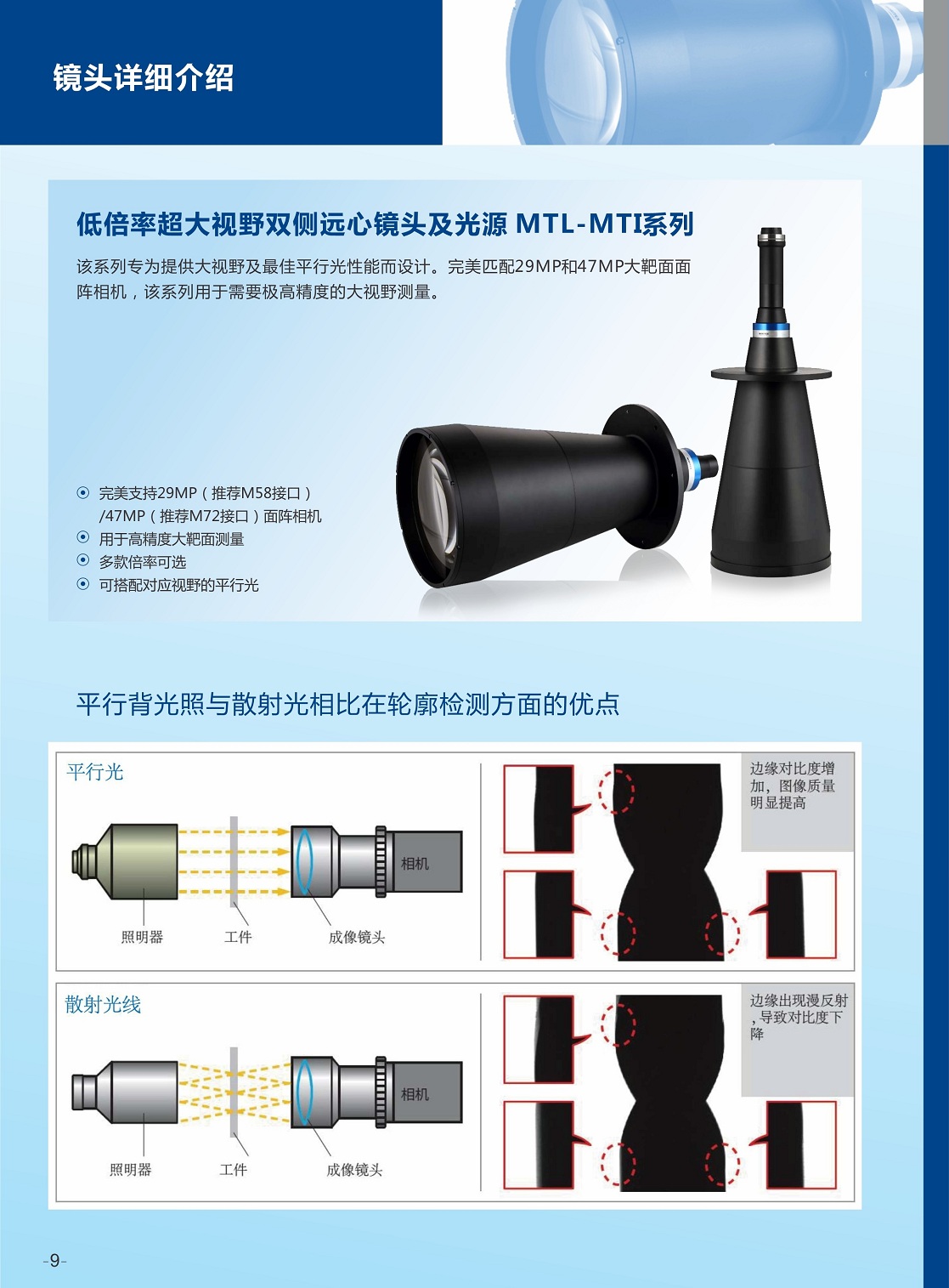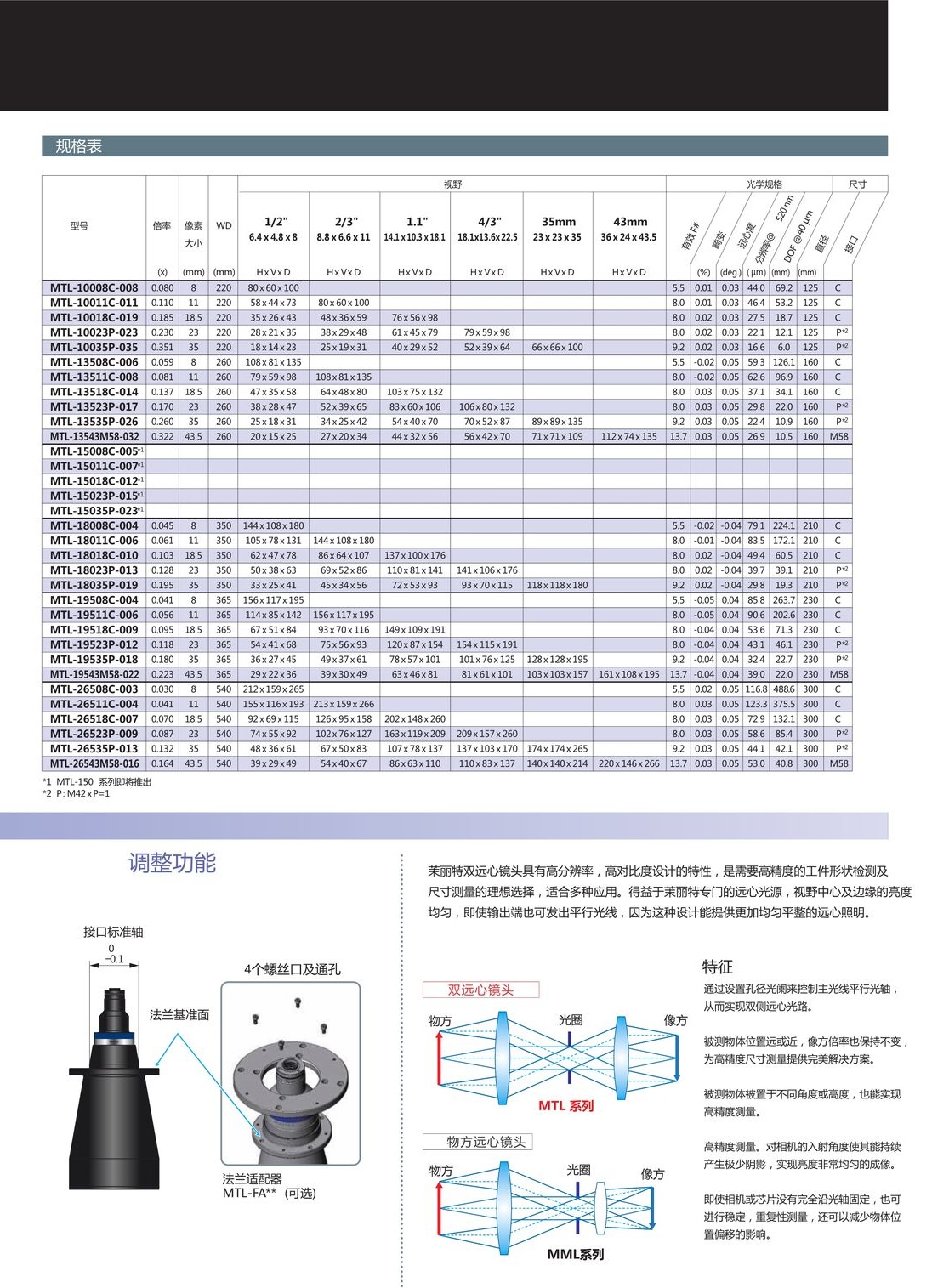 低倍率超大視野雙側遠心鏡頭及光源MTL/MTI系列