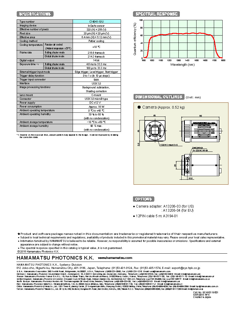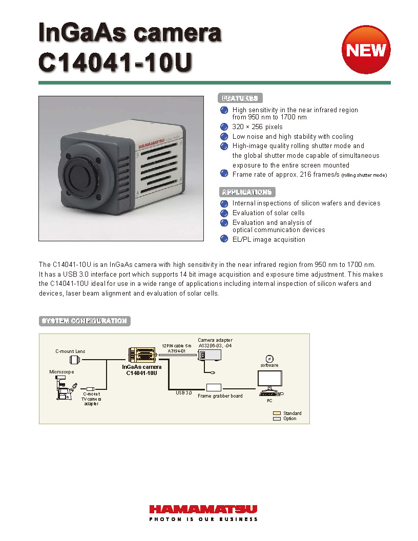 首頁 科學產品 濱松科學級相機 InGaAs及NIR相機