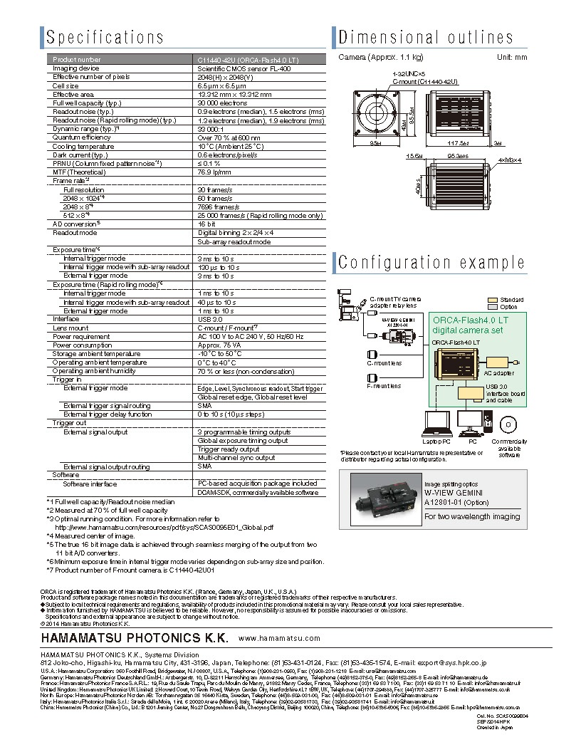 濱松 Digital camera C11440-42U (ORCA-Flash4.0 LT)