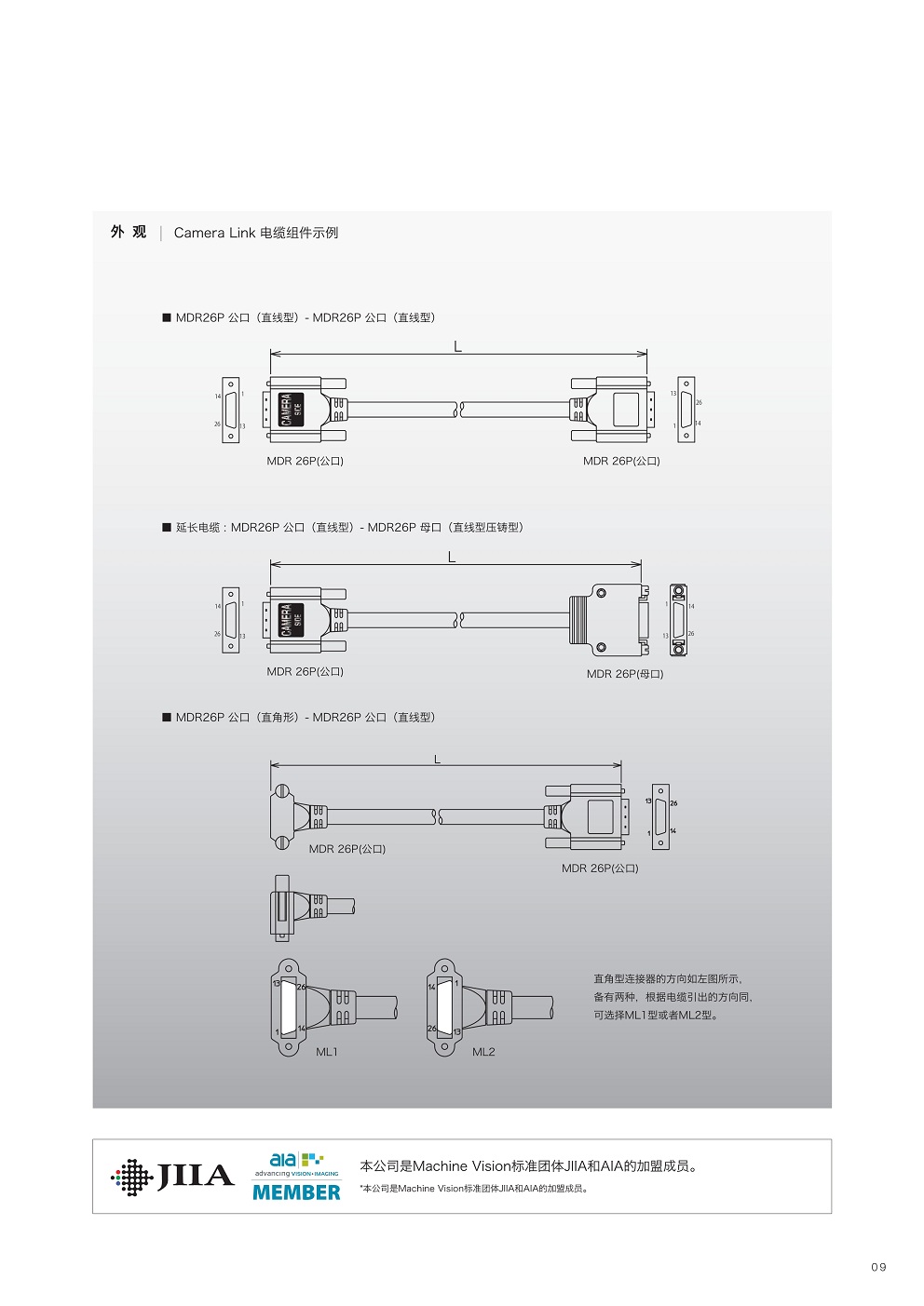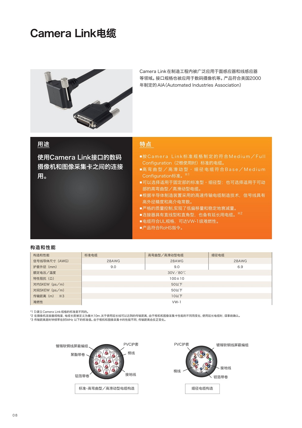 ■按Camera Link標準規格制定的符合Medium/Full Configuration(2根使用時)標準的電纜。