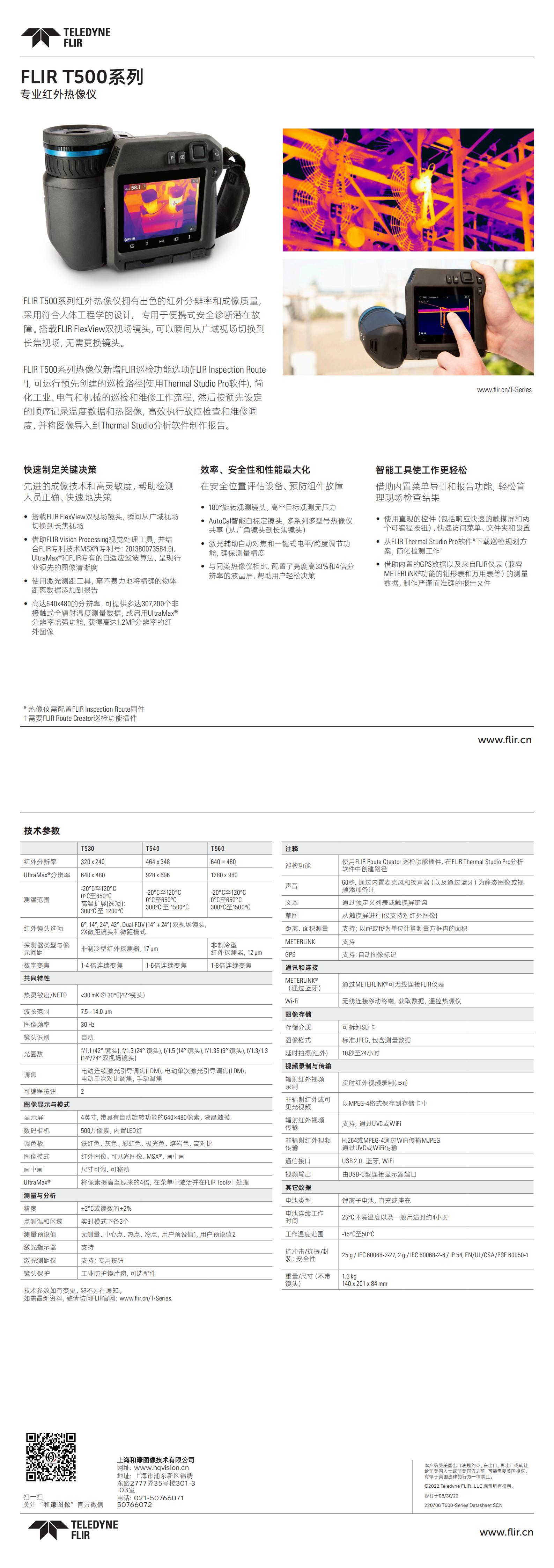 FLIR T500系列熱像儀采用人體工學設計,分辨率高,能快速排查熱點、找出隱藏的故障并確認維修結果。這款(分辨率高達640×480 [307,200像素])熱像儀配備明亮的 4 英寸液晶顯示屏和可180°旋轉的鏡頭平臺,因此您甚至能在難以觸及區域輕松舒適地診斷電氣或機械問題。這款相機內置先進的測量工具(如單觸式電平/跨度),采用激光輔助自動對焦技術,使您每次都能記錄精確的溫度測量值。通過板載 FLIR 檢測路線模式,您可以從 FLIR Thermal Studio Pro(帶 FLIR Route Creator 插件)中將檢測計劃下載到您的相機上運行。這些系統綜合起來,可以幫助您按照邏輯順序記錄溫度數據和圖像,加快故障排除和維修的速度。