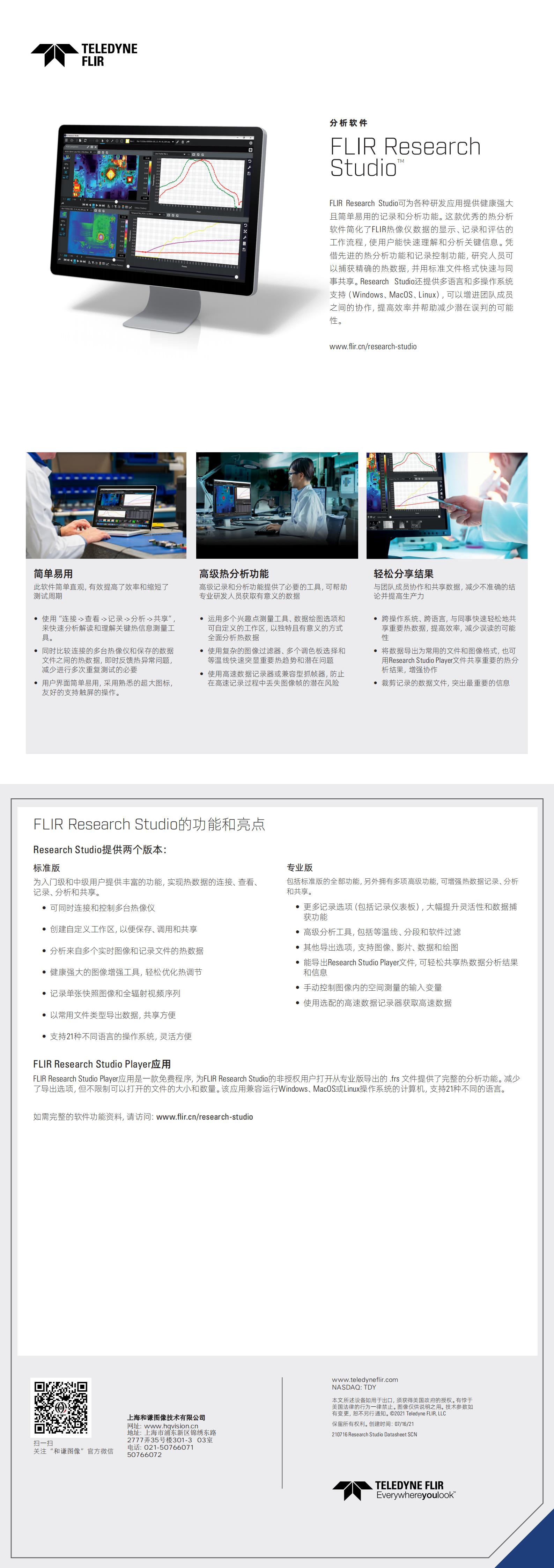 FLIR Research Studio 依據您的工作方式而設計,以直觀的用戶界面,為各種研發應用場景提供強大的記錄和分析功能。這款高級、先進的熱分析軟件提供簡化的工作流程,可同時顯示、記錄和評估多個FLIR熱像儀的數據,讓您能夠快速解讀和理解關鍵信息。FLIR Research Studio 還具有多語言和多平臺支持 (WindowsMacOSLinux),可改善團隊成員之間的協作、提高效率,并有助于減少因翻譯不佳而產生錯誤解讀的可能性。