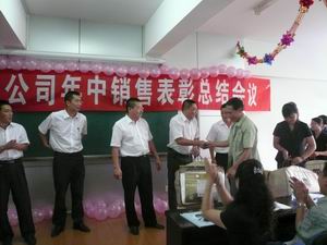 隨后進行了半年優(yōu)秀銷售人員的獎勵儀式,王東升、許延海、王立強等7名同志憑借突出的銷售業(yè)績得到公司的嘉獎,隨后頒發(fā)了銷售新人獎,華中區(qū)的黃偉華當選,隨后張軍作為業(yè)務員代表發(fā)表感言,感謝宏岳全體同仁給予銷售的幫助,表示將再接再厲,取得年度更好的銷售成績。隨后全體人員參加了半年銷售慶功會,全體人員的熱情在宴會現(xiàn)場達到了沸騰的程度,人們用高昂的歌聲表達出火一樣的激情,同時使人感覺到宏岳全體銷售人員眾志成城、勇攀高峰的滿懷豪情。總結會結束了,各區(qū)域業(yè)務員即將踏上新的征程,為創(chuàng)造更加輝煌的2009年度銷售業(yè)績開始下一輪的拼搏努力!