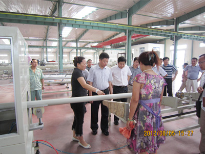 騰市長在常務副總魏廣屏、銷售副總季平的陪同參觀了湖北宏岳廠區和生產車間。騰市長對宏岳管材優良的產品品質及湖北宏岳公司快速發展速度予以高度肯定。魏總也表示,在市領導的關注與支持下,湖北宏岳公司將再接再厲,將宏岳品牌做大做強。