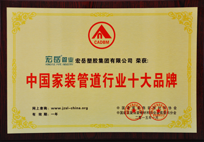 日前,在中國(guó)建筑裝飾裝修材料協(xié)會(huì)建筑塑料分會(huì)組織開展的“中國(guó)家裝管道行業(yè)十大品牌”評(píng)選活動(dòng)中,宏岳憑借優(yōu)異的產(chǎn)品性能和廣泛的品牌認(rèn)知度,獲評(píng)“中國(guó)家裝管道行業(yè)十大品牌”榮譽(yù)稱號(hào),同時(shí)宏岳集團(tuán)被指定為“中國(guó)塑料管道安裝工(河北)培訓(xùn)基地”。