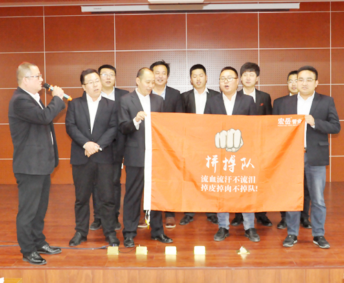 4月3日,宏岳集團營銷誓師大會在營銷中心熱血開展! 全員參與,激情動員,宏岳銷售精英們組成十個戰隊,并確立自己的隊長、隊名、隊旗、隊標及隊呼。在大會上各戰隊“亮隊型、展風彩、表決心”,隊員們慷慨激昂的表態發言,點燃了營銷人員的滿腔熱情。