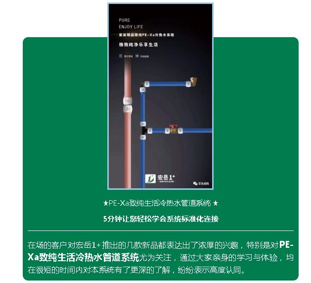 宏岳集團擁有亞洲最大的PE-Xa系統(tǒng)產(chǎn)品生產(chǎn)基地,在相關(guān)技術(shù)上已達到世界標準,甚至優(yōu)于世界標準;John先生宣講結(jié)束,還接受了在場百余名精英客戶的熱情提問,并作出了詳盡且務(wù)實的回答與技術(shù)展示。
