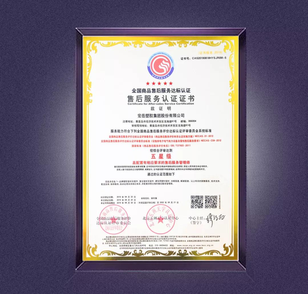 宏岳1+完善的售后服務(wù),使得宏岳1+于2019年8月獲得全國(guó)商品售后服務(wù)五星級(jí)認(rèn)證。