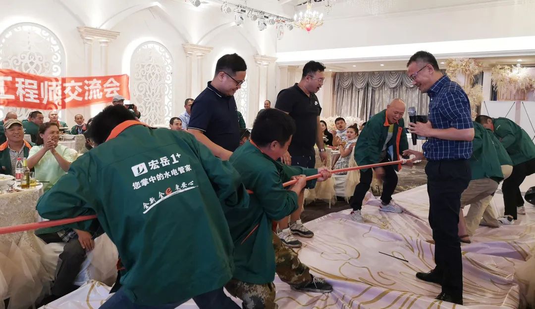娛樂環(huán)節(jié),主辦方使用現(xiàn)場連接的PE-Xa管道代替繩索舉辦了拔河比賽。在參賽嘉賓全力以赴的角逐后,管材連接處紋絲不動。大家通過比賽直觀感受到宏岳1+連接系統(tǒng)的可靠性,在享受比賽樂趣之余,對宏岳1+系統(tǒng)安全性充滿了信心。