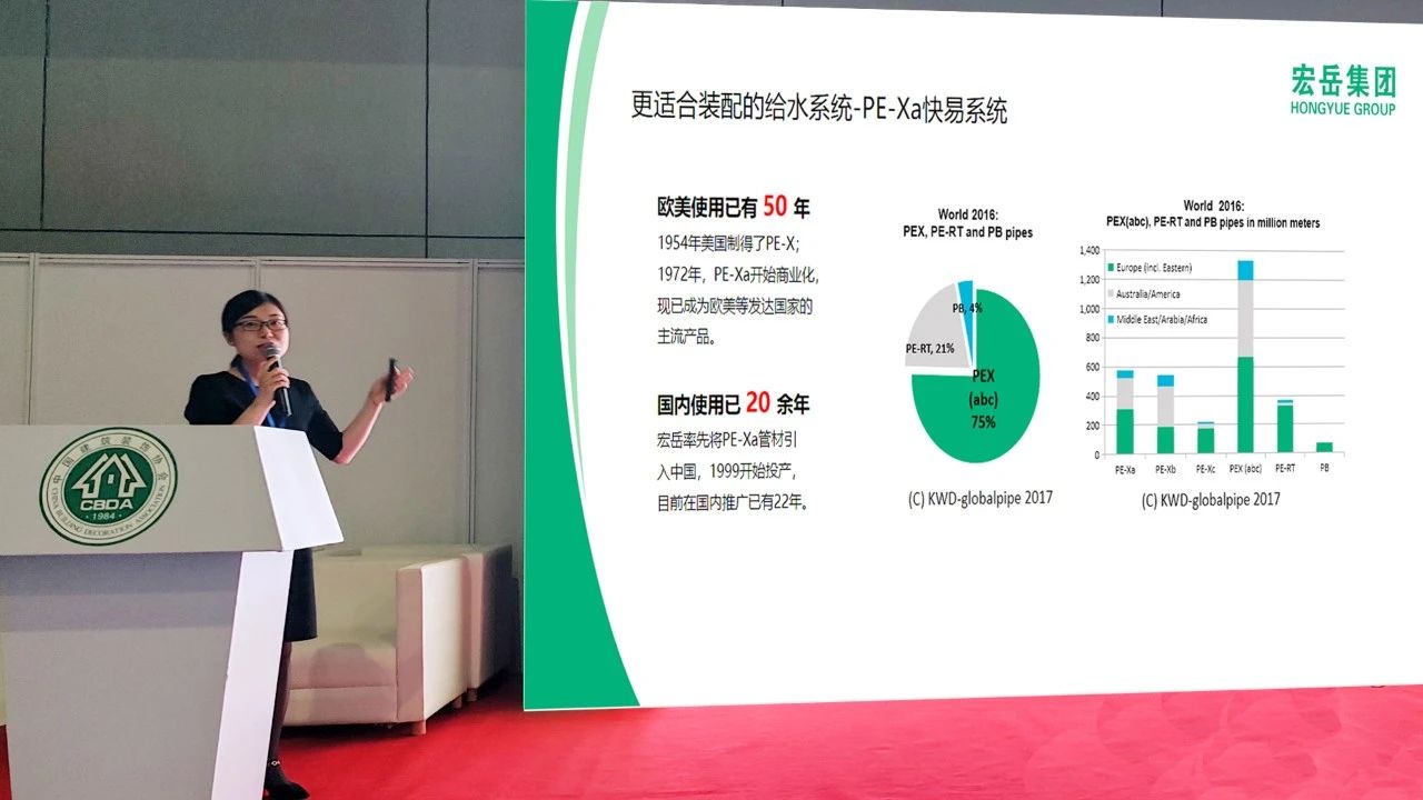 產品技術工程師于海華在論壇上做“PE-Xa快易式供水系統在快裝中的應用”主題演講,與在場的行業大咖們共同就智裝快裝、行業趨勢及建筑設計、生產、施工一體化等內容進行學術交流與探討,得到了與會嘉賓們的高度認可。