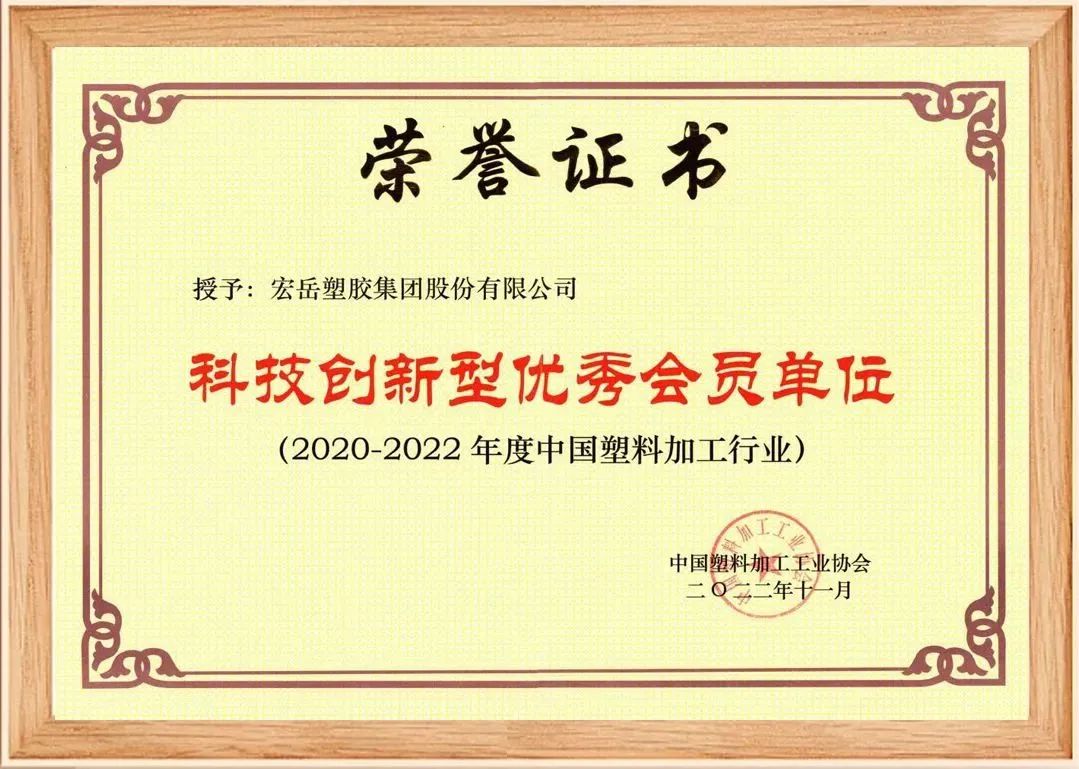 近日,由中國塑料加工工業協會主辦的第三屆中國塑料行業科技大會在南京隆重召開,宏岳塑膠集團應邀參加并榮獲“優秀科技成果”、“科技創新型優秀會員單位”殊榮。
