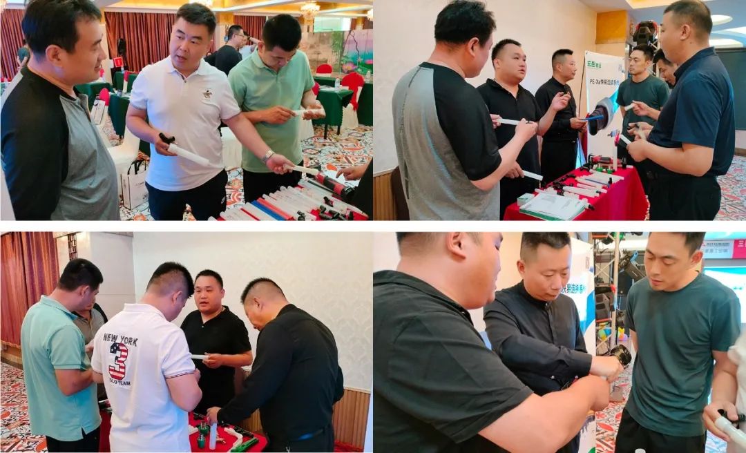會議現場,宏岳1+家裝事業部李總就宏岳塑膠集團的規模實力概況做簡要介紹,并就PE-Xa快易連接系統的特點以及在兩聯供管路安裝上有哪些優勢,做詳細介紹?,F場展臺重點展示了PE-Xa快易連接管道系統,參會者紛紛駐足停留咨詢了解、連接實操,此系統連接憑借其簡單、快捷、安全的產品及連接優勢,受到了與會者們的一致好評。